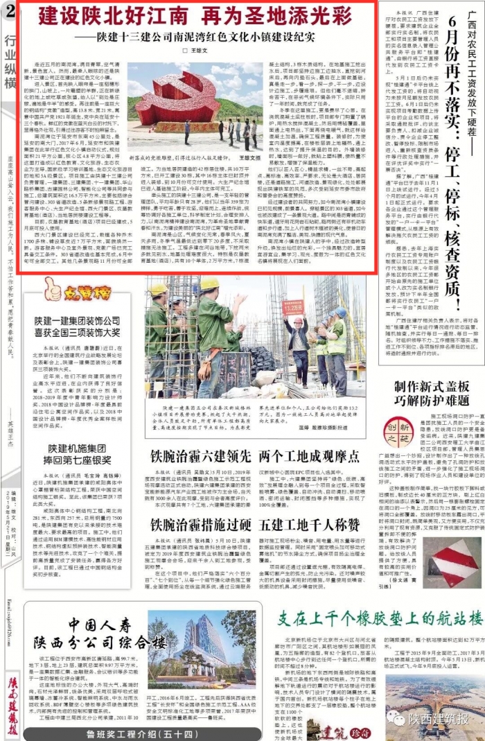 近日,陜建十三建公司負(fù)責(zé)管理的南泥灣紅色文化小鎮(zhèn)項(xiàng)目登上《陜西建筑報(bào)》,宣傳分享了南泥灣紅色文化小鎮(zhèn)建設(shè)的施工進(jìn)展情況及十三建公司在建設(shè)中所發(fā)揮的管理作用。