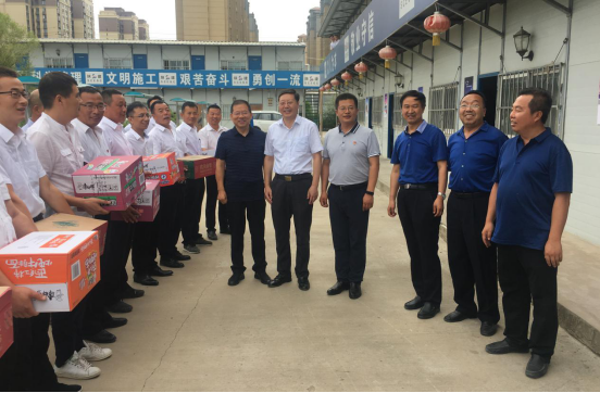 8月9日上午,延安大學(xué)校長張金鎖,副校長楊偉宏,校辦主任劉述進(jìn)、工會(huì)主席白澤生一行到延安大學(xué)新校區(qū)項(xiàng)目慰問一線職工,陜建十三公司董事長、總經(jīng)理卜國平一同慰問,延大校辦、工會(huì)及新校區(qū)辦公室相關(guān)負(fù)責(zé)人參加慰問活動(dòng)。