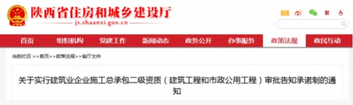(三)實(shí)施范圍。本通知印發(fā)之日起,工商注冊地在陜西的建筑業(yè)企業(yè)建筑工程和市政工程施工總承包二級資質(zhì)實(shí)行告知承諾制審批。
