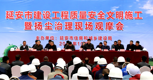 為進(jìn)一步強(qiáng)化質(zhì)量安全生產(chǎn)意識(shí),深化文明工地創(chuàng)建活動(dòng),提高建設(shè)工程質(zhì)量安全管理水平,11月1日,延安市住建局組織召開(kāi)了建筑工程質(zhì)量安全文明施工暨揚(yáng)塵治理現(xiàn)場(chǎng)觀摩會(huì)。市考核辦、文明辦、應(yīng)急管理局、環(huán)保局、新區(qū)管委會(huì)等13家負(fù)責(zé)同志出席會(huì)議。各縣區(qū)住建部門(mén)及市直施工企業(yè)、監(jiān)理單位負(fù)責(zé)同志共200余人參加了會(huì)議。