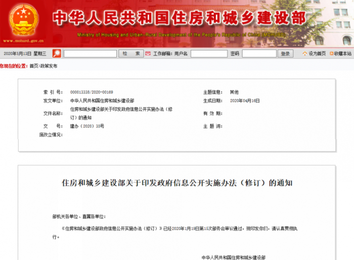 《實(shí)施辦法》要求,住房和城鄉(xiāng)建設(shè)部公開(kāi)政府信息,采取主動(dòng)公開(kāi)和依申請(qǐng)公開(kāi)的方式。