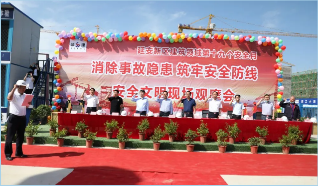 5月29日,由延安市新區(qū)住房和城市建設(shè)局主辦的第19個(gè)安全生產(chǎn)月宣誓暨“消除事故隱患 筑牢安全防線”安全文明現(xiàn)場(chǎng)觀摩會(huì)在陜建十三建公司清華大學(xué)附屬中學(xué)延安學(xué)校項(xiàng)目舉行。