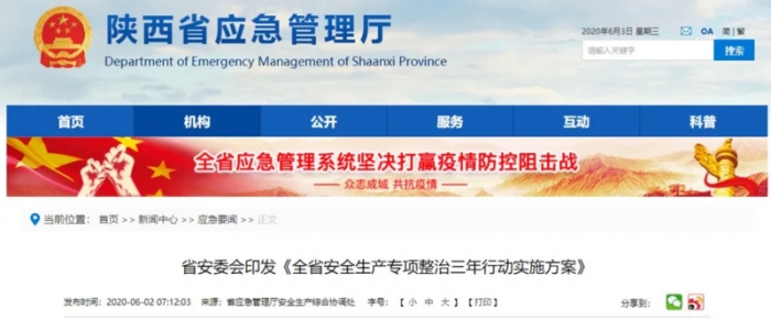 日前,省安委會印發(fā)《全省安全生產專項整治三年行動實施方案》(陜安委〔2020〕8號),在全省部署開展全省安全生產專項整治三年行動。專項整治三年行動,從2020年5月啟動,2022年12月結束,分為動員部署、排查整治、集中攻堅和鞏固提升4個階段。