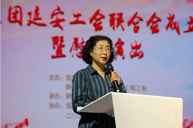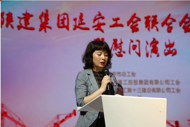 陜建集團(tuán)女工委主任、機(jī)關(guān)工會主席劉愛英同志宣讀陜建集團(tuán)工會成立延安工作站的文件。