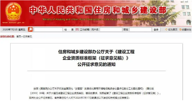 7月2日,住建部發(fā)布《住房和城鄉(xiāng)建設(shè)部辦公廳關(guān)于<建設(shè)工程企業(yè)資質(zhì)標(biāo)準(zhǔn)框架(征求意見(jiàn)稿)>公開征求意見(jiàn)的通知》,在通知中明確: