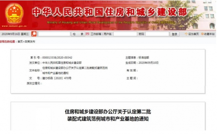 9月15日,住建部認定西安市等18個城市為第二批裝配式建筑范例城市,天津市現(xiàn)代建筑產(chǎn)業(yè)園區(qū)等12個園區(qū)、北京建工集團有限責(zé)任公司等121家企業(yè)為第二批裝配式建筑產(chǎn)業(yè)基地。