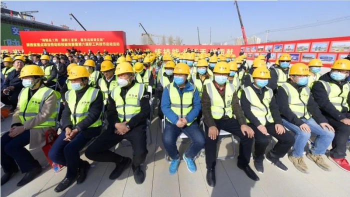 陜西省重點項目勞動和技能競賽暨第六屆職工科技節(jié)在陜建火車站項目啟動