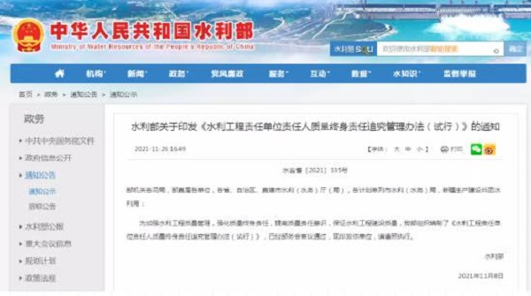 終身追責(zé)!《水利工程責(zé)任單位責(zé)任人質(zhì)量終身責(zé)任追究管理辦法(試行)》印發(fā)