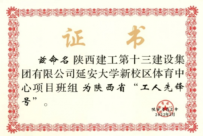 喜報(bào)!延安大學(xué)新校區(qū)體育中心項(xiàng)目班組榮獲陜西省“工人先鋒號(hào)”稱號(hào)