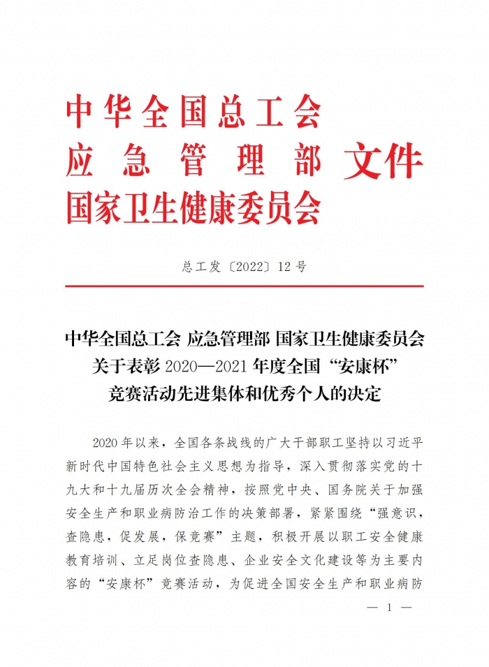 11月2日,全國(guó)“安康杯”競(jìng)賽組委會(huì)在北京召開(kāi)2020-2021年度全國(guó)“安康杯”競(jìng)賽活動(dòng)表彰暨經(jīng)驗(yàn)交流會(huì)。表彰2020—2021年度全國(guó)“安康杯”競(jìng)賽先進(jìn)集體和優(yōu)秀個(gè)人,集團(tuán)延安南泥灣勞模工匠學(xué)院項(xiàng)目榮獲“優(yōu)勝班組”榮譽(yù)稱號(hào)。