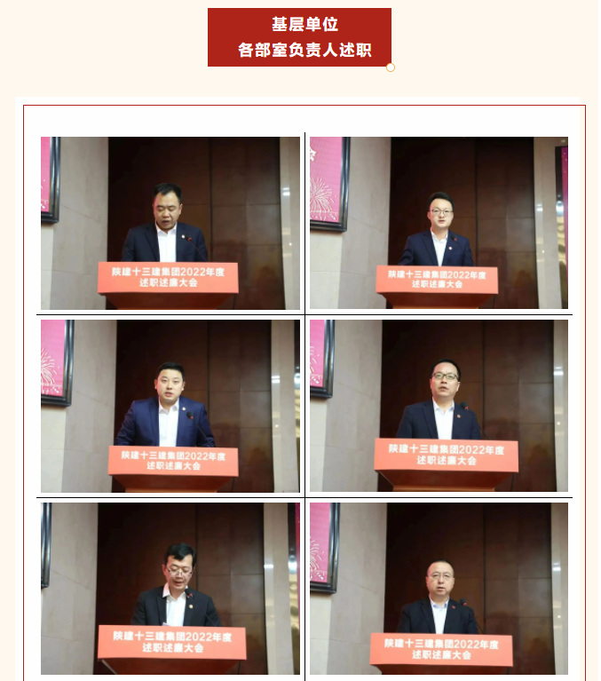 2月12日,陜建十三建集團(tuán)召開2022年度述職述廉大會(huì),集團(tuán)領(lǐng)導(dǎo)班子、機(jī)關(guān)各部室、各基層單位負(fù)責(zé)人及職工代表參加了會(huì)議。