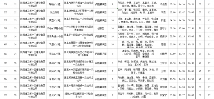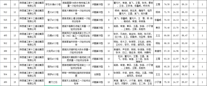 近日,陜西省建筑業(yè)協(xié)會(huì)表彰了2023年度陜西省工程建設(shè)優(yōu)秀QC小組、QC小組活動(dòng)先進(jìn)企業(yè)、卓越領(lǐng)導(dǎo)者、優(yōu)秀推進(jìn)者。集團(tuán)24項(xiàng)成果榮獲“2023年陜西省工程建設(shè)優(yōu)秀QC小組”(其中I類成果獎(jiǎng)11項(xiàng),II類成果獎(jiǎng)12項(xiàng),III類成果獎(jiǎng)1項(xiàng))