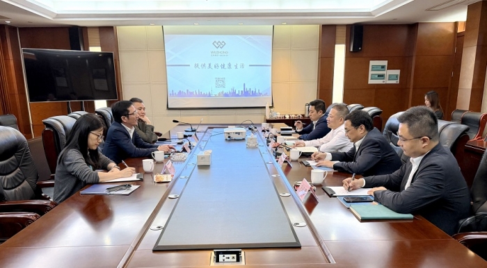 10月28日,集團與江蘇吳中醫(yī)藥發(fā)展股份有限公司對接交流。江蘇吳中醫(yī)藥發(fā)展股份有限公司董事長兼總裁錢群山,陜建股份省外經(jīng)營部總經(jīng)理齊佐軍,集團黨委書記、董事長卜國平出席。