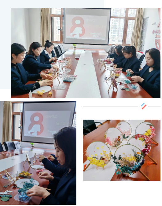 3月7日,第六工程公司開了“指尖花韻 扇繪美好”永生花DIY團扇主題活動,活動鋪開素白團扇,女職工們化身“花藝師”,精心布局、細致粘貼、展示作品、交流心得,大家在創(chuàng)作中感受文化魅力,提升審美素養(yǎng)。