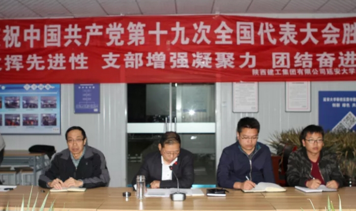 為深入貫徹落實(shí)中央、省市委和集團(tuán)公司關(guān)于學(xué)習(xí)宣傳貫徹黨的十九大精神的有關(guān)要求,切實(shí)學(xué)習(xí)好、宣傳好、貫徹好黨的十九大精神,用十九大精神武裝頭腦、指導(dǎo)實(shí)踐、推動(dòng)工作。11月14日晚七點(diǎn),黨的十九大精神專題宣貫會(huì)在延安大學(xué)新校區(qū)圖書館會(huì)議室隆重舉行。陜建集團(tuán)工程八部、陜建十三公司全體職工和延安大學(xué)新校區(qū)項(xiàng)目部全體黨員同志近70人參加會(huì)議。由卜國(guó)平同志對(duì)黨的十九大精神和習(xí)近平總書記在十九大上的重要講話進(jìn)行宣貫。
